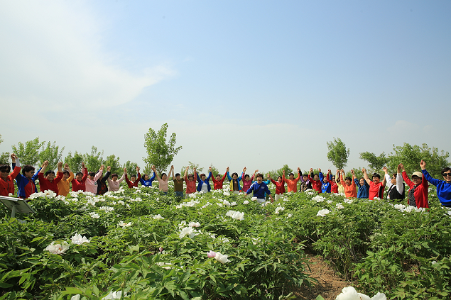 据社区支部书记田丰介绍,与普通的观赏牡丹有所不同,油用牡丹可以说浑身是宝。作为一种新兴的木本油料作物,春来赏花,结籽后可榨油,花蕊还可以做成牡丹花茶。村民也能在这里实现一份土地两份收入,一方面土地流转分红每亩达到700多元,每三年分红收益递增6%,另一方面村民通过入园务工每人人均纯收入有4000余元。截止目前,社区累计受益群众600余户,村集体经济年收入20万元。三十岁的田晓娟满脸洋溢着幸福说:“在园区里上班不比在县城里挣得少,还能在家陪孩子,我有好几个邻居也都回来了,村里也不冷清了,真是越来越热闹啦!”