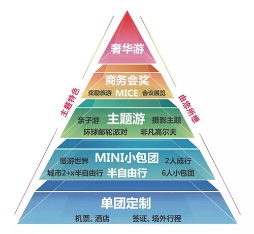 一直以来,OTA和旅行社成为旅游业两大“对立”的代名词。随着越来越多OTA线下体验店的开设,旅行社线上预定服务的启用,两者间的界限逐渐模糊,提供的产品和服务亦不再是“非自由行即团队游”。作为出境旅游批发运营商,我们认为团队游将在组团形式上逐渐向定制游发展。加之“新游客”已通过旅游攻略积累了出境游经验,旅游本身已经跳脱出“观光”属性,走向文化体验的新方向。