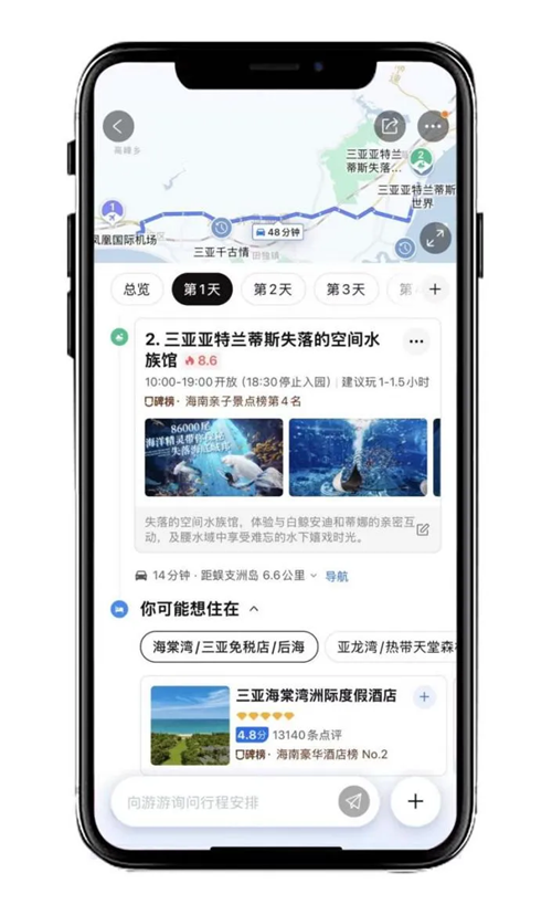 “AI行程助手”依托携程全球2000万旅游兴趣点与数亿用户真实反馈,实现了从行程规划到机票、酒店、景点门票预订的无缝闭环。用户只需输入“目的地与出行天数”等需求,AI即可结合口碑榜真实评价与实时数据,智能推荐最优方案,彻底告别反复查阅、信息碎片化的低效规划模式。同时,AI行程助手融合AI智能规划与人工定制师服务,支持可视化地图查看与编辑行程,用户可在系统推荐基础上自由调整与优化,轻松生成真正可落地执行的专属旅行计划。