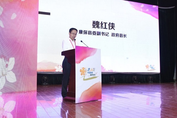 康保县县委副书记、政府县长魏红侠致欢迎辞,他表示康保地处河北坝上西北部,地域广阔、历史悠久,有着壮美秀丽的自然风光、光辉灿烂的地域文化、特色鲜明的满蒙风情,发展生态旅游业的优势和潜力巨大。近年来,康保县人民政府把发展生态旅游业作为脱贫攻坚的重要抓手,编制了《康保县全域旅游发展规划》,培育了“草原国际马拉松”“国际遗鸥摄影周”等品牌活动。本届旅游扶贫发展论坛,不仅是康保旅游发展史上的一次盛会,也是脱贫攻坚期间具有里程碑意义的一次盛会,我们相信,论坛的成功举办,必将对康保旅游发展产生重大而深远的影响,为全县脱贫攻坚注入新的活力。