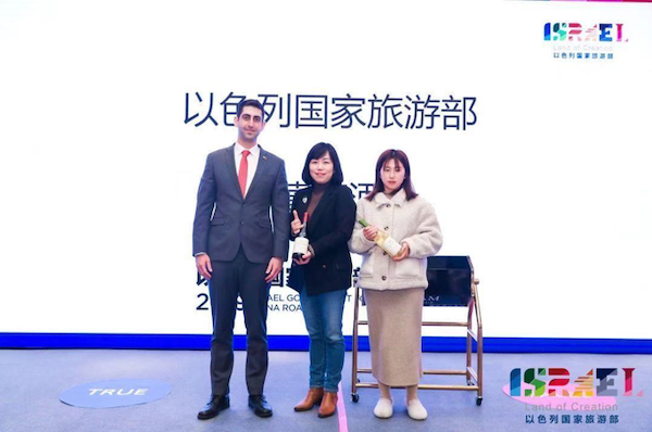 路演设置了抽奖环节,以色列国家旅游部旅游参赞蓝天与获奖嘉宾合影