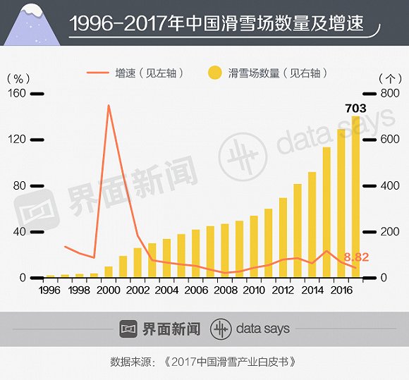 根据《2017中国滑雪产业白皮书》,2017年中国滑雪场数量达703个。