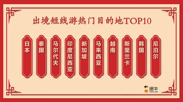 出境短线游方面,游客的预订决策周期呈现明显的“短平快”特征,交通便捷、免签或签证便利、旅游消费性价比较高的目的地备受青睐。其中,日本、泰国、马尔代夫、印度尼西亚、新加坡、马来西亚、越南、斯里兰卡、韩国、尼泊尔等目的地是途牛用户预订的热门。